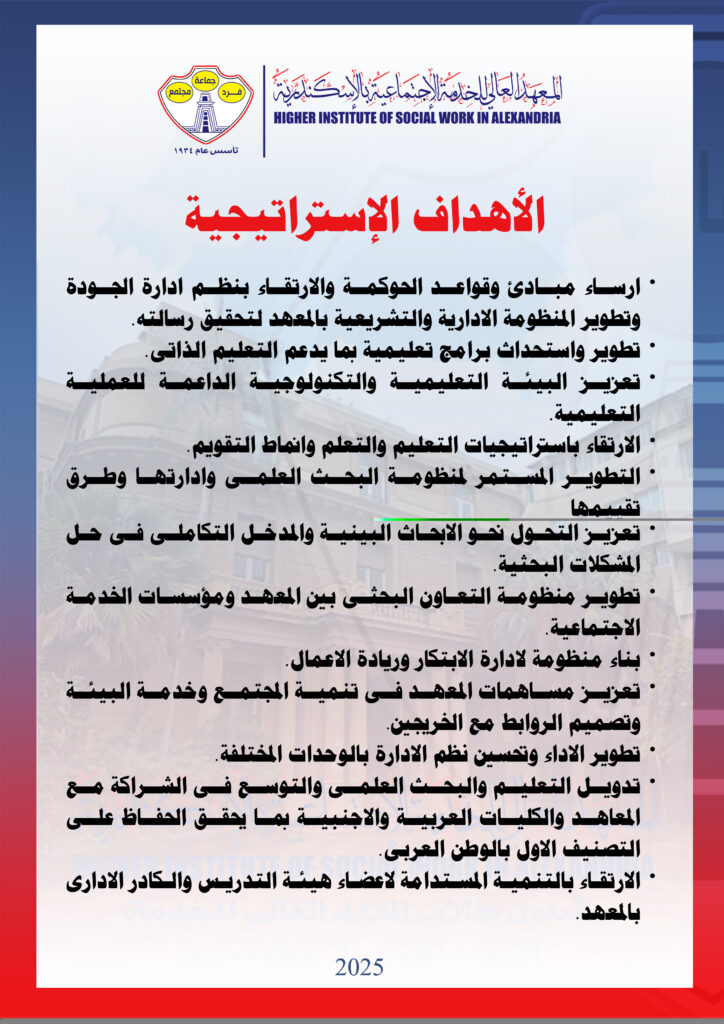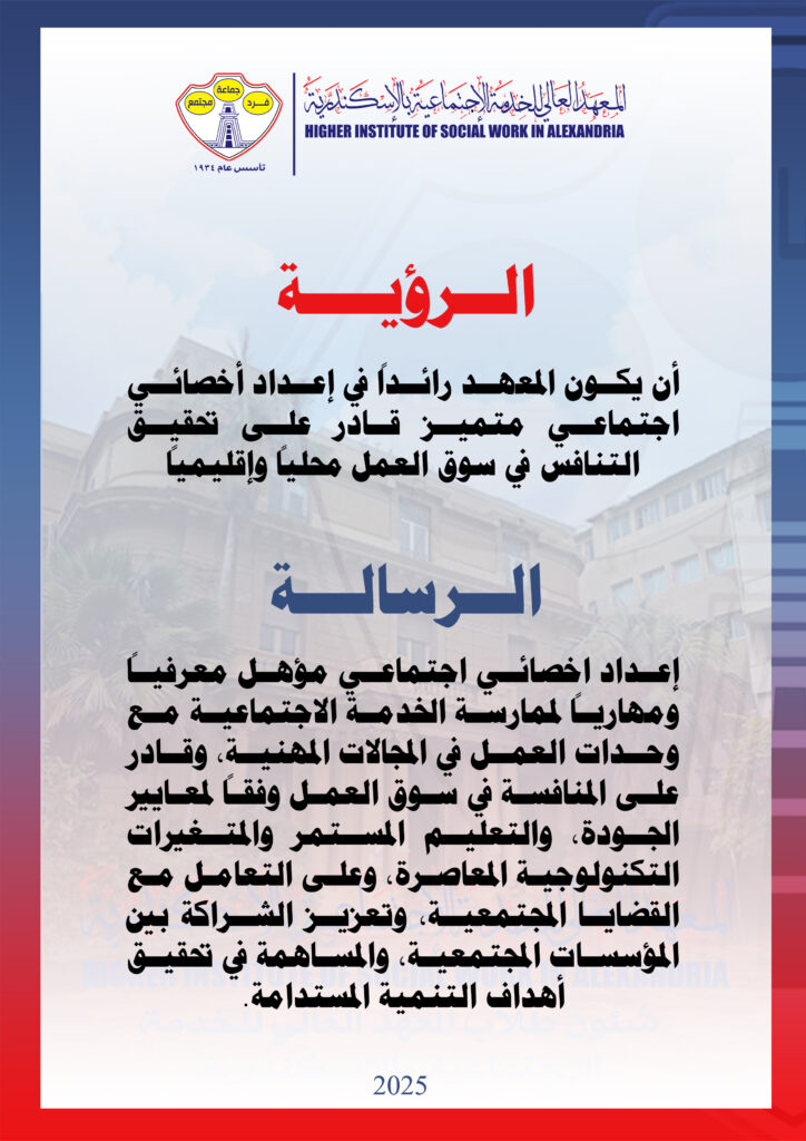 المعهد العالى للخدمة الاجتماعية بالاسكندرية > الرؤية والرسالة